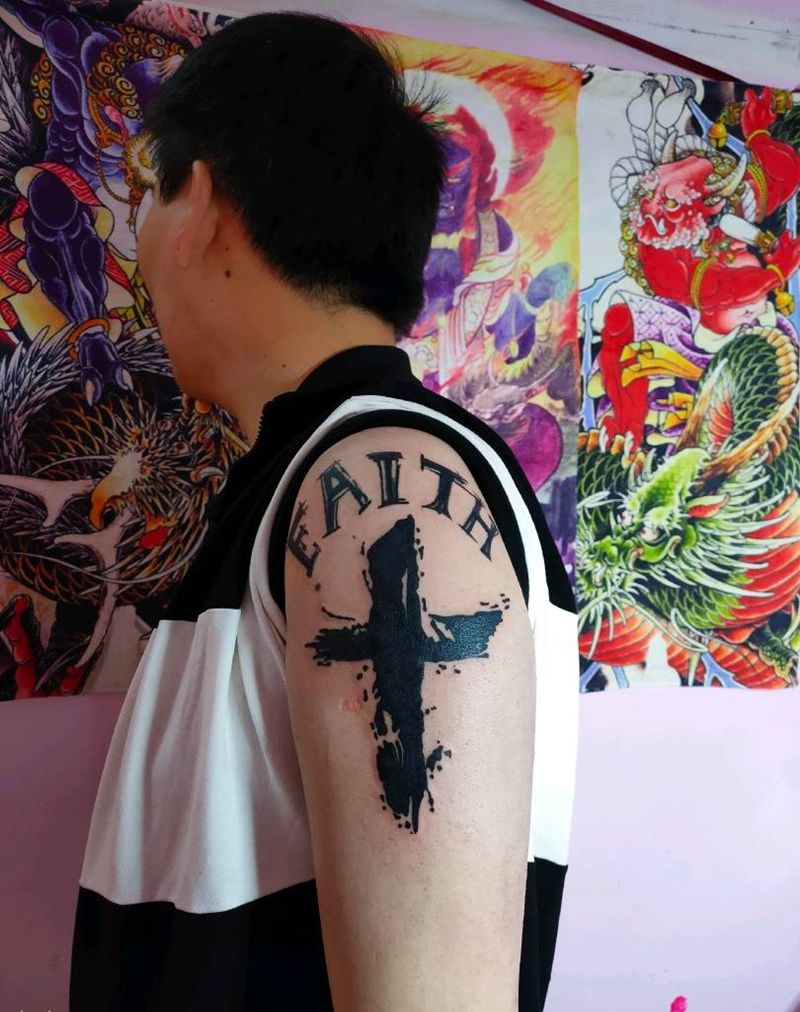 当前位置: 首页 >内蒙古呼伦贝尔市纹身店-518刺青纹身图案>十字架疤痕遮盖纹身图片_手臂纹身图案