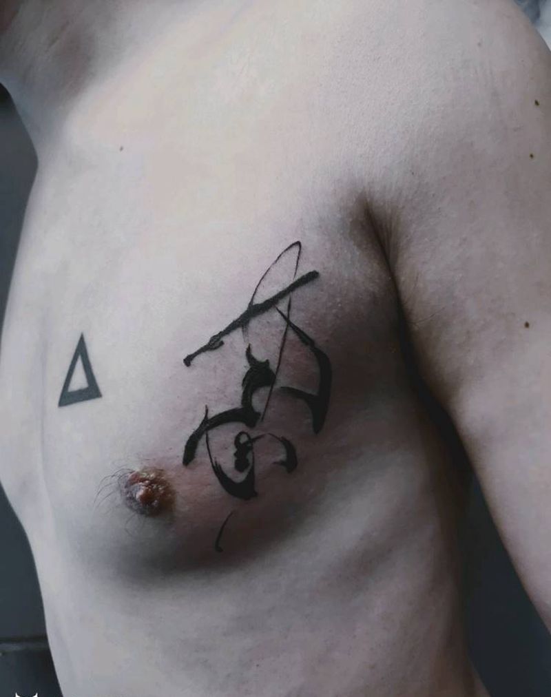 字纹身图片_胸部水墨纹身图案