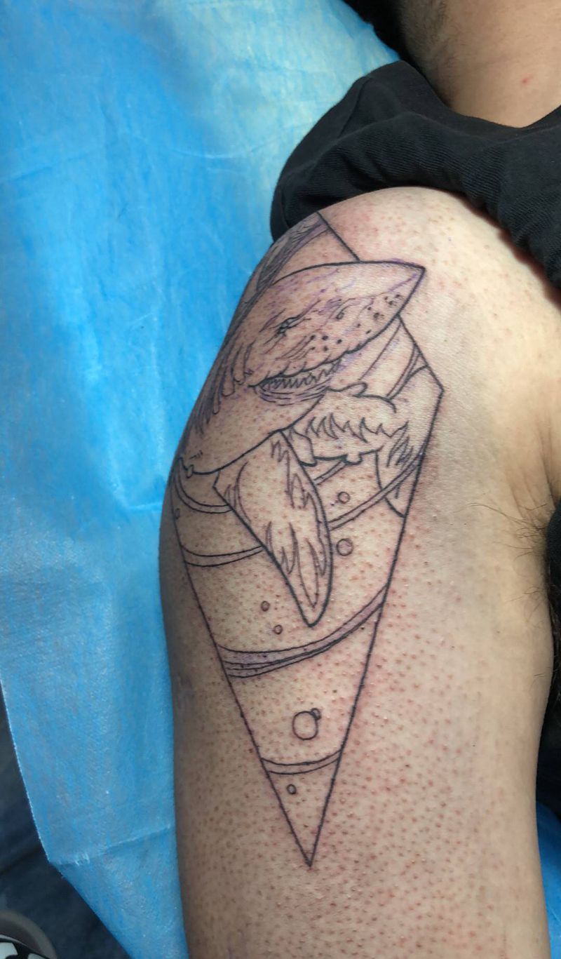 当前位置: 首页 >内蒙古通辽市纹身店-通辽乔老师刺青纹身 乔雷刺青纹身图案>通辽乔雷刺青纹身鲨鱼纹身图片_肩部欧美写实New School纹身图案