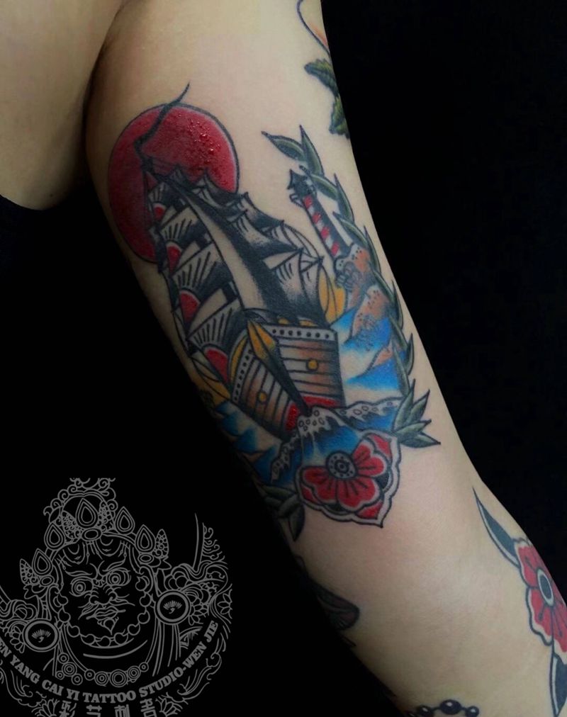 当前位置: 首页 >辽宁省沈阳市纹身店-沈阳彩艺刺青纹身图案>Oldschool纹身图片_手臂Old School纹身图案