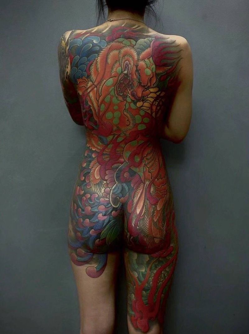 黑灰满背纹身图案