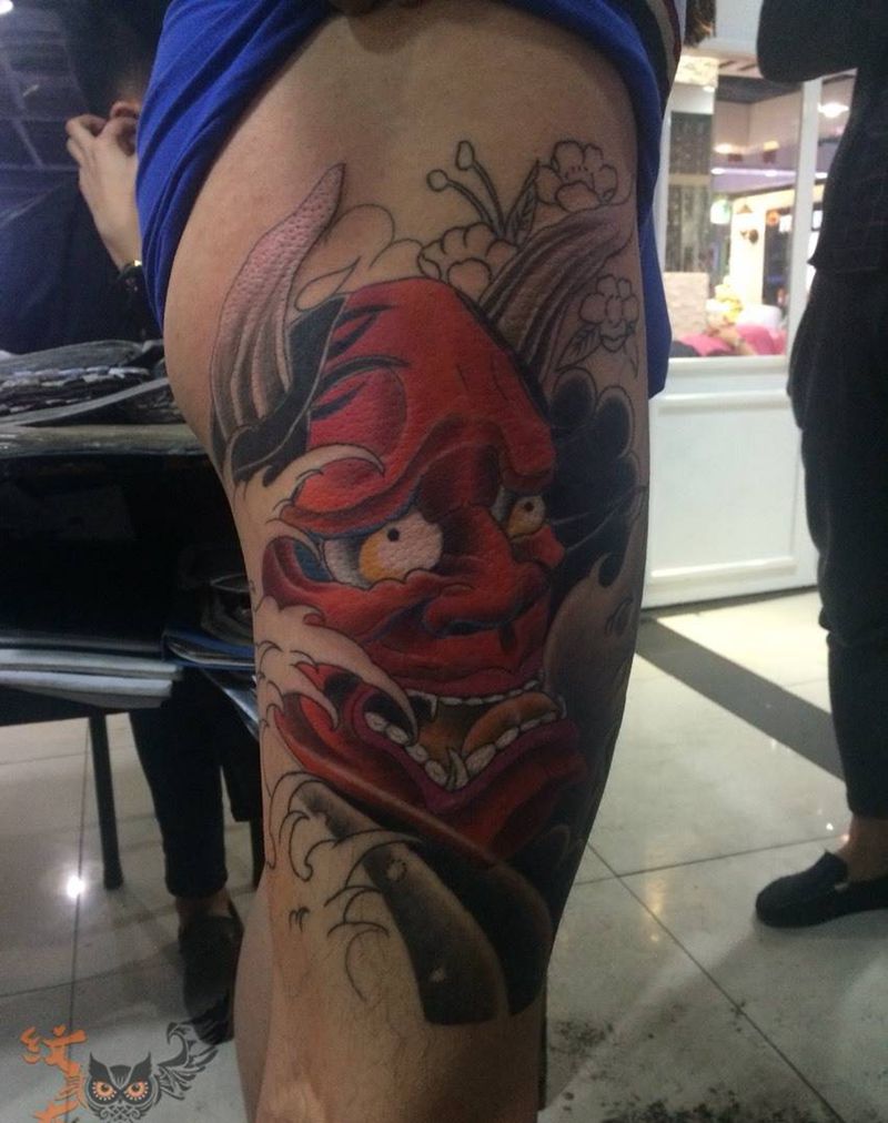 • T包小腿吹火男+阿多福纹身图片_腿部老传统新传统吹火男阿