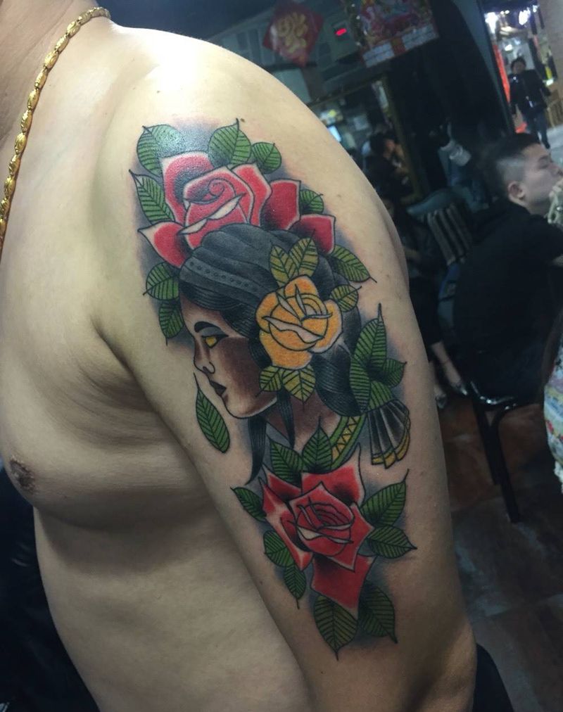 school纹身图片_肩部欧美人物纹身图案