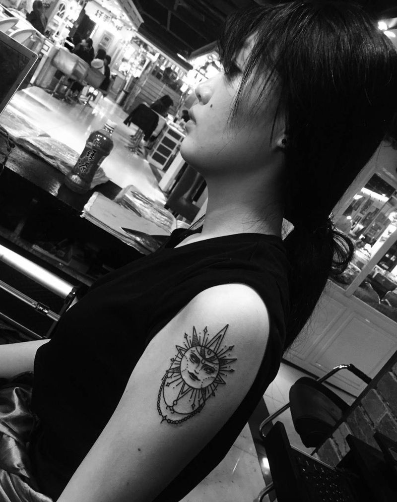 当前位置: 首页 >辽宁省沈阳市纹身店-沈阳彩艺刺青纹身图案>太阳神图腾纹身图片_肩部清新几何纹身图案