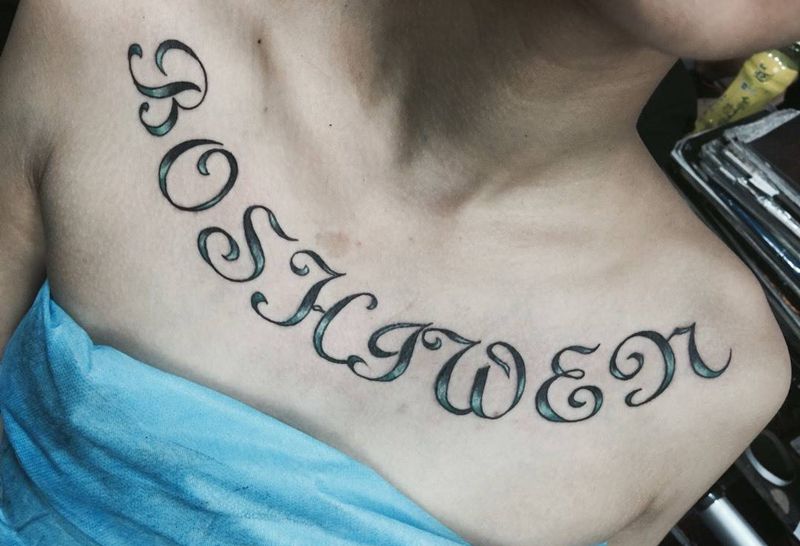 花胸字母纹身图片_成品胸部纹身图案