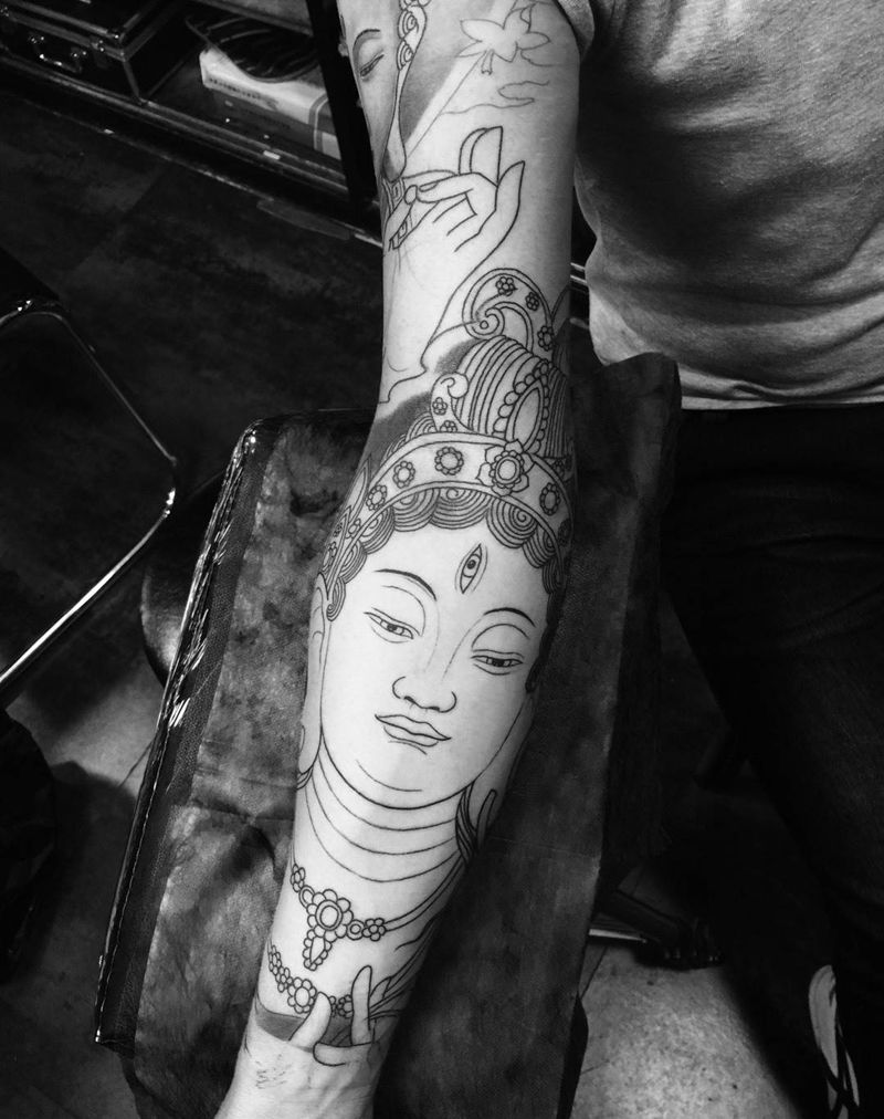 当前位置: 首页 >辽宁省沈阳市纹身店-沈阳彩艺刺青纹身图案>绿度母纹身图片_手部人物传统纹身图案