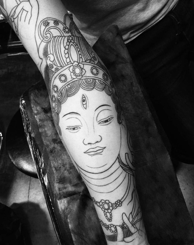 当前位置: 首页 >辽宁省沈阳市纹身店-沈阳彩艺刺青纹身图案>绿度母纹身图片_手部人物传统纹身图案