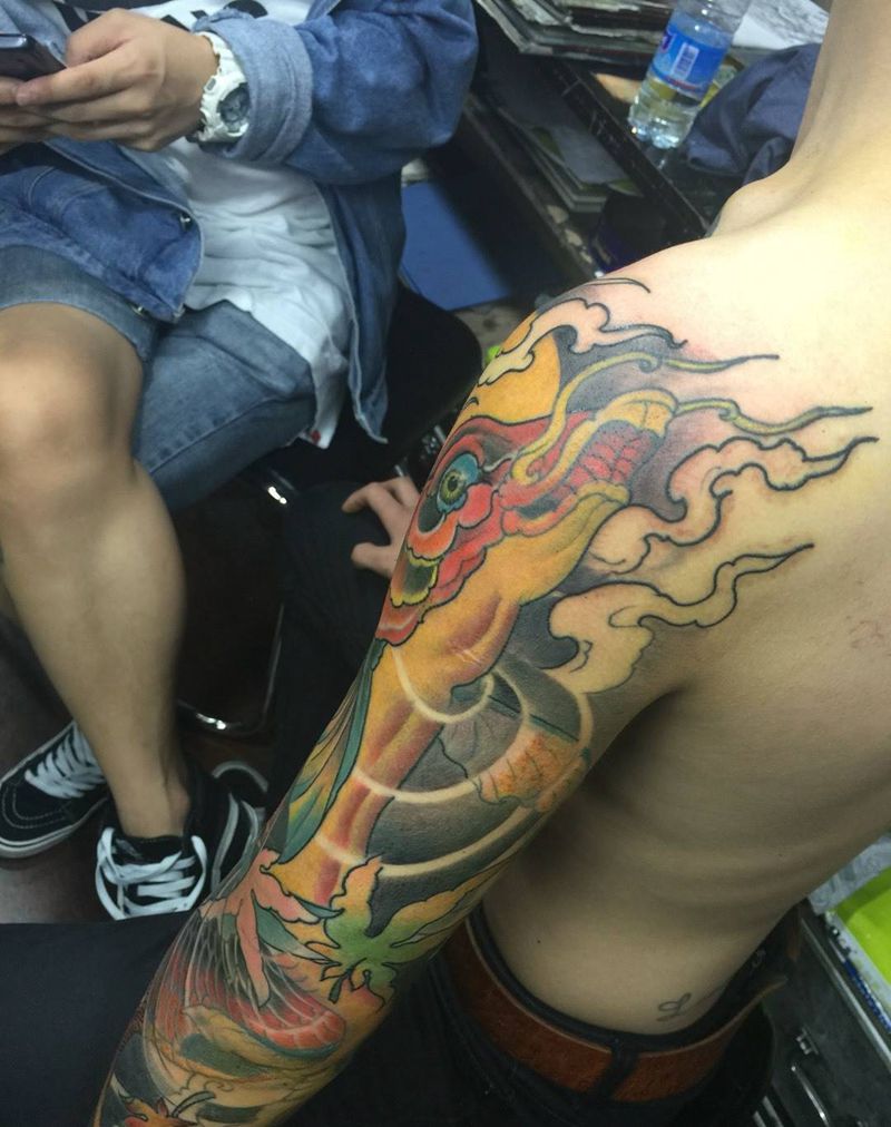 • T网红王老大花腿龙纹身图片_腿部新传统纹身图案