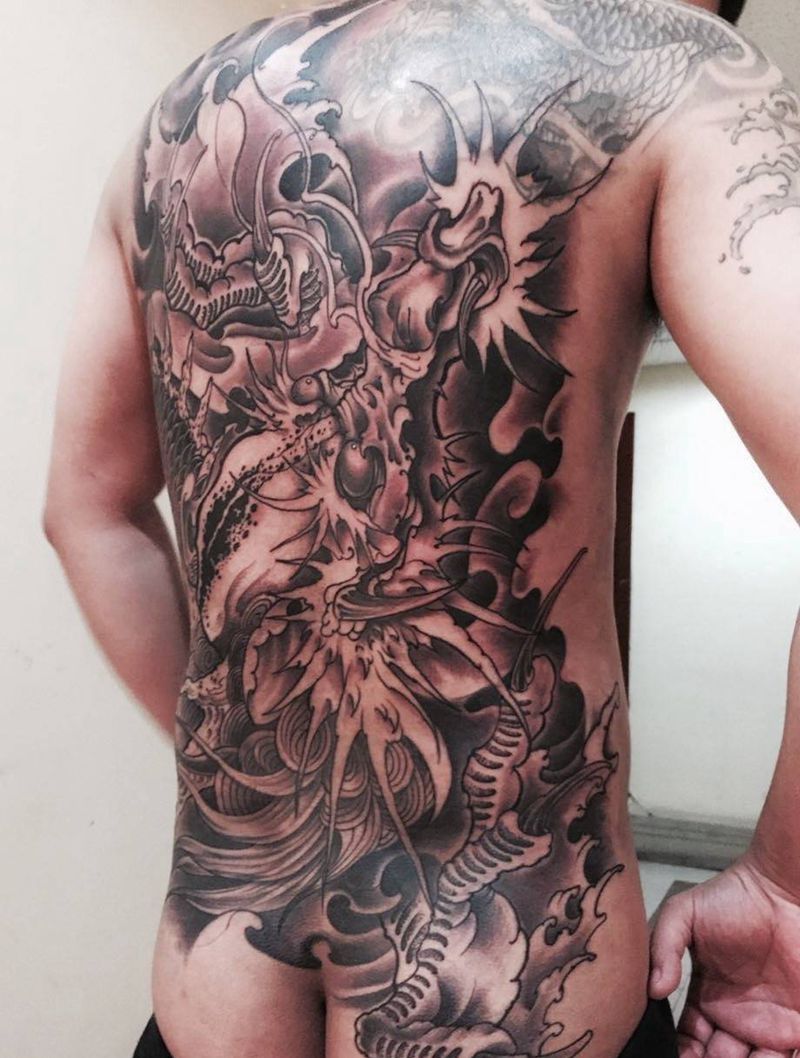 • T云龙九郎纹身图片_背部老传统云龙九郎纹身图案