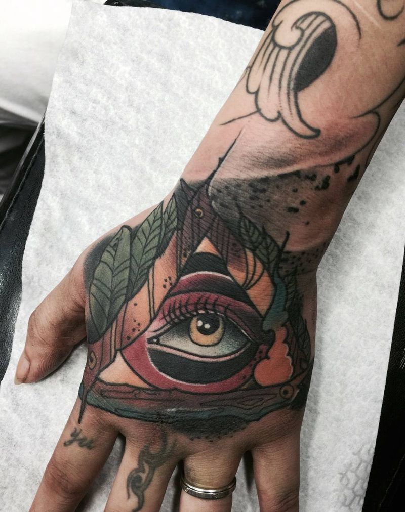 • 手背潮流时尚的玫瑰花眼睛纹身图案