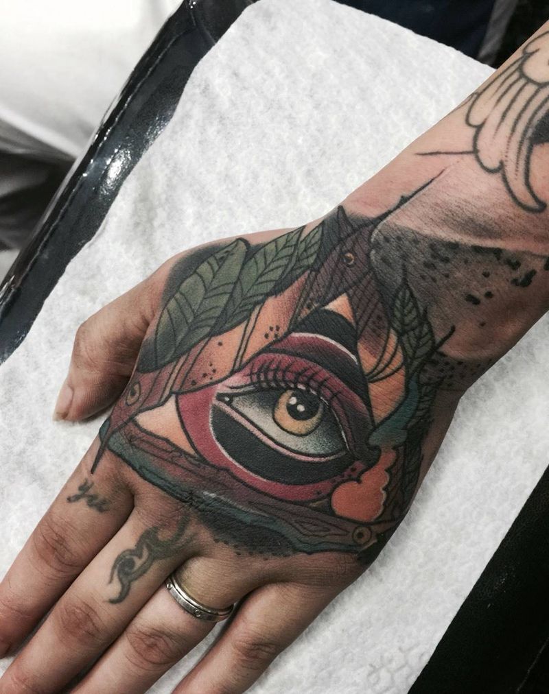 • 手背潮流时尚的玫瑰花眼睛纹身图案