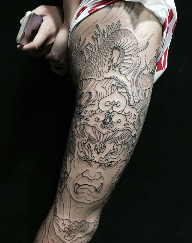 当前位置: 首页 >辽宁省沈阳市纹身店-沈阳彩艺刺青纹身图案>明王线条...纹身图片