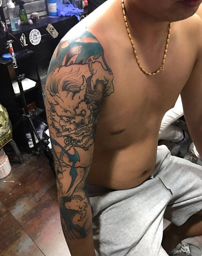 • T网红王老大花腿龙纹身图片_腿部新传统纹身图案