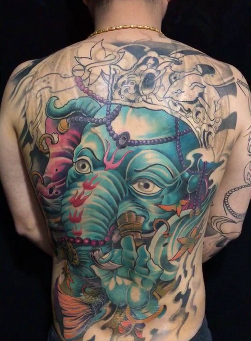 黑灰满背纹身图案