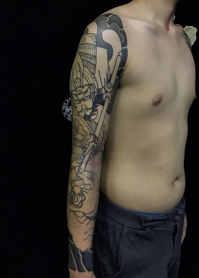 当前位置: 首页 >辽宁省沈阳市纹身店-沈阳彩艺刺青纹身图案>老传统(武松打虎)纹身图片