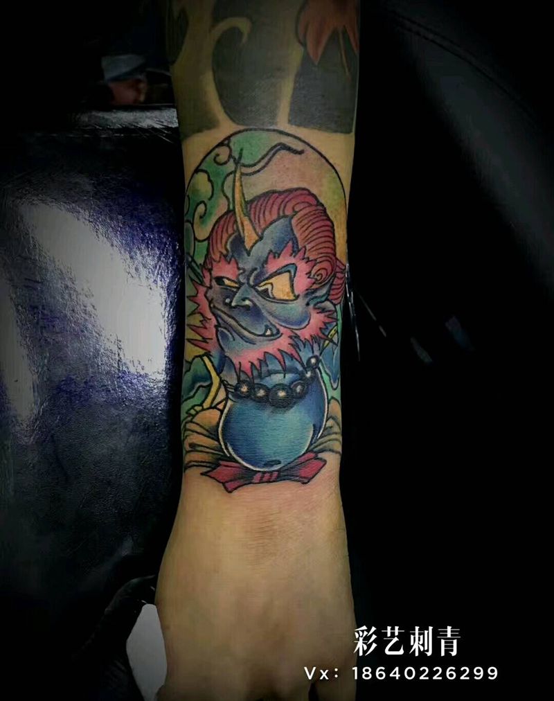 当前位置: 首页 >辽宁省沈阳市纹身店-沈阳彩艺刺青纹身图案>Q版风神雷神.纹身图片_手臂新传统New School纹身图案