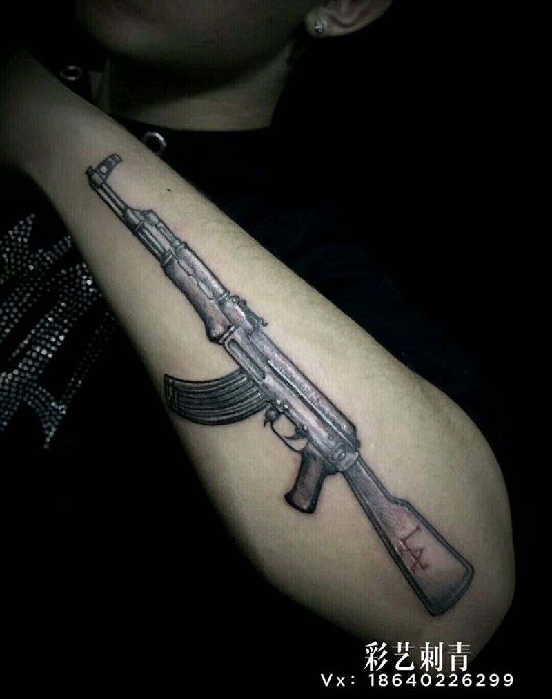 店内精致小图,AK47纹身图片_手臂点刺New School纹身图案