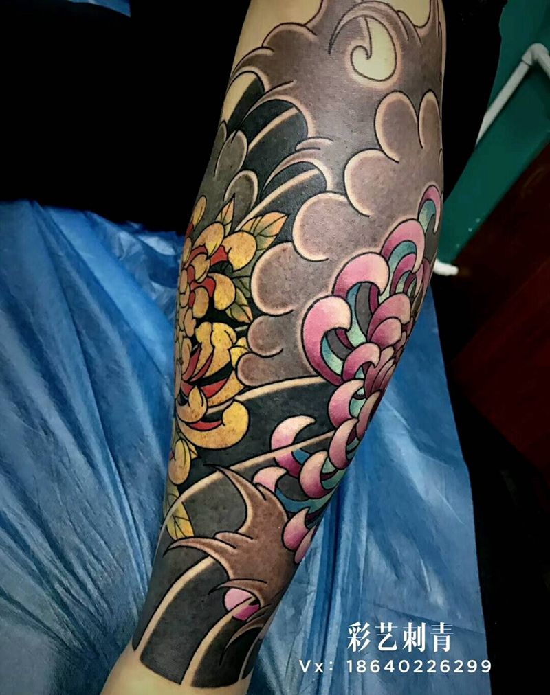 当前位置: 首页 >辽宁省沈阳市纹身店-沈阳彩艺刺青纹身图案>老传统菊花包小腿,店长作品纹身图片_腿部老传统纹身图案