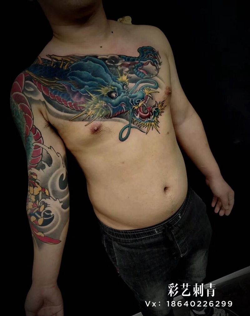 • T网红王老大花腿龙纹身图片_腿部新传统纹身图案