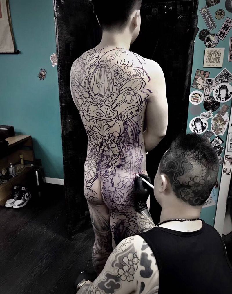 当前位置: 首页 >辽宁省沈阳市纹身店-沈阳彩艺刺青纹身图案>纹杰老师工作,年前最后一位顾客,纹身图片_背部新传统纹身图案