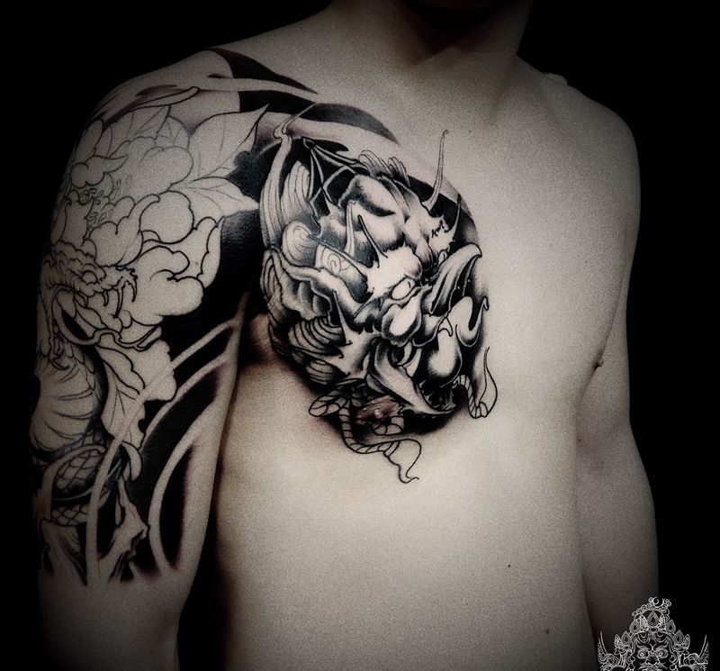 店内半甲,下次彩色纹身图片_手臂胸部新传统纹身图案