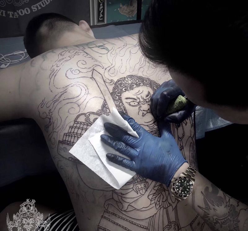 当前位置: 首页 >辽宁省沈阳市纹身店-沈阳彩艺刺青纹身图案>纹杰老师工作 不动明王纹身图片_背部老传统纹身图案