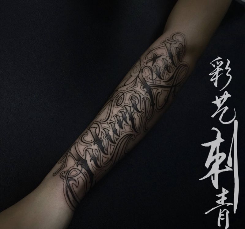 当前位置: 首页 >辽宁省沈阳市纹身店-沈阳彩艺刺青纹身图案>店内花体英文纹身图片_手臂花体字纹身图案