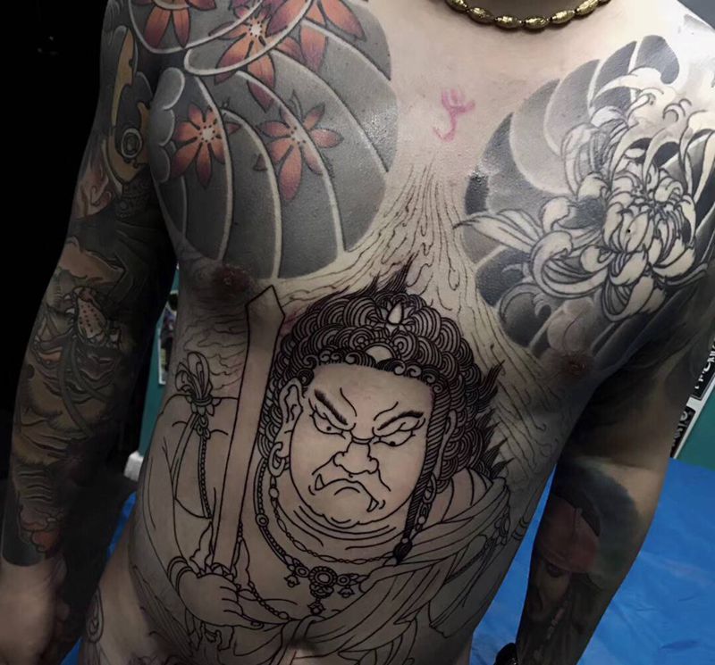 当前位置: 首页 >辽宁省沈阳市纹身店-沈阳彩艺刺青纹身图案>又一位通体路上的朋友纹身图片_胸部腿部老传统纹身图案