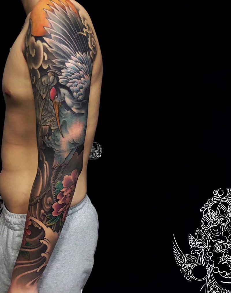 当前位置: 首页 >辽宁省沈阳市纹身店-沈阳彩艺刺青纹身图案>仙鹤花臂纹身图片_手臂新传统纹身图案