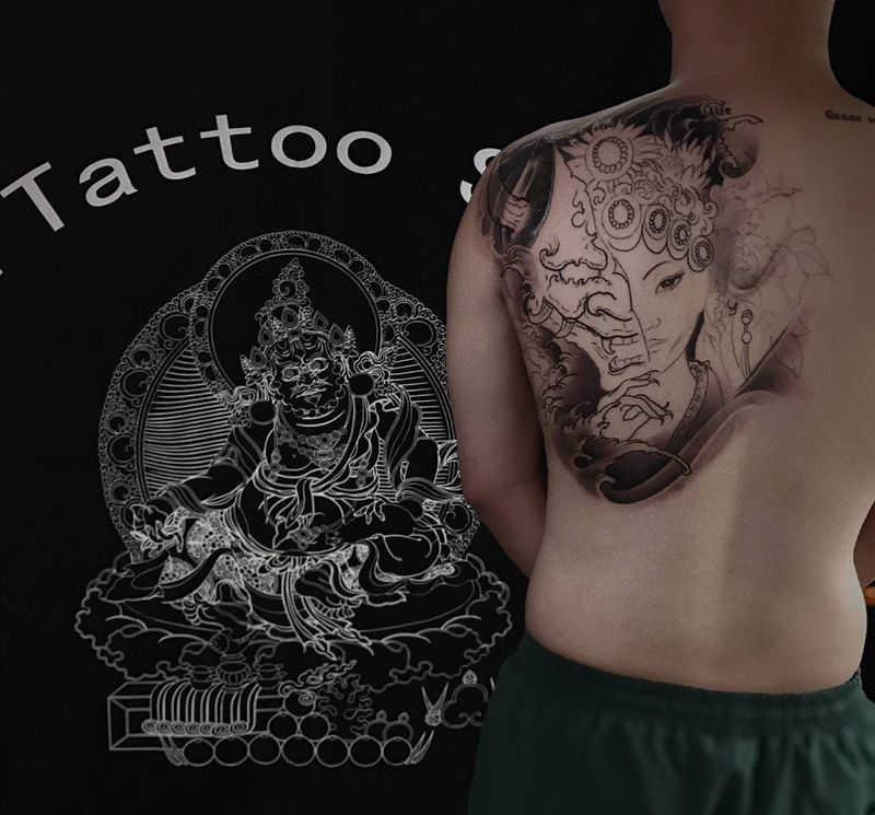 黑灰满背纹身图案