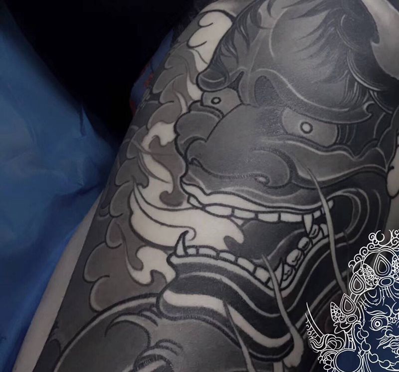 当前位置: 首页 >辽宁省沈阳市纹身店-沈阳彩艺刺青纹身图案>老传统 灰般若纹身图片_腿部老传统纹身图案