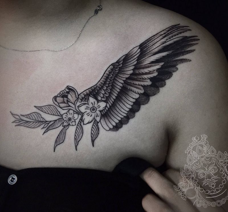 小清新纹身纹身图片_胸部点刺纹身图案