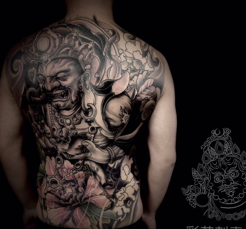 黑灰满背纹身图案