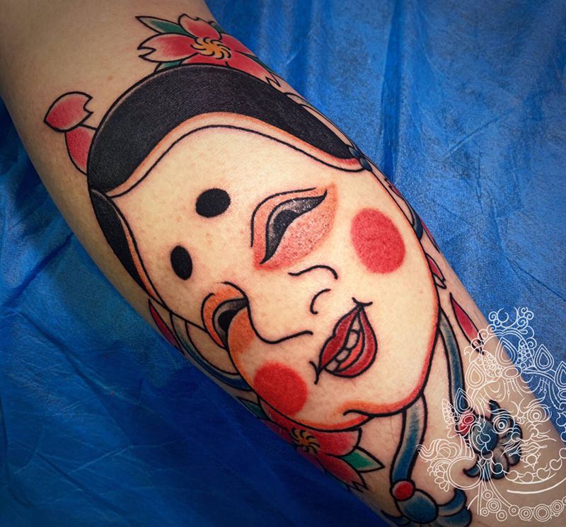 • T包小腿吹火男+阿多福纹身图片_腿部老传统新传统吹火男阿