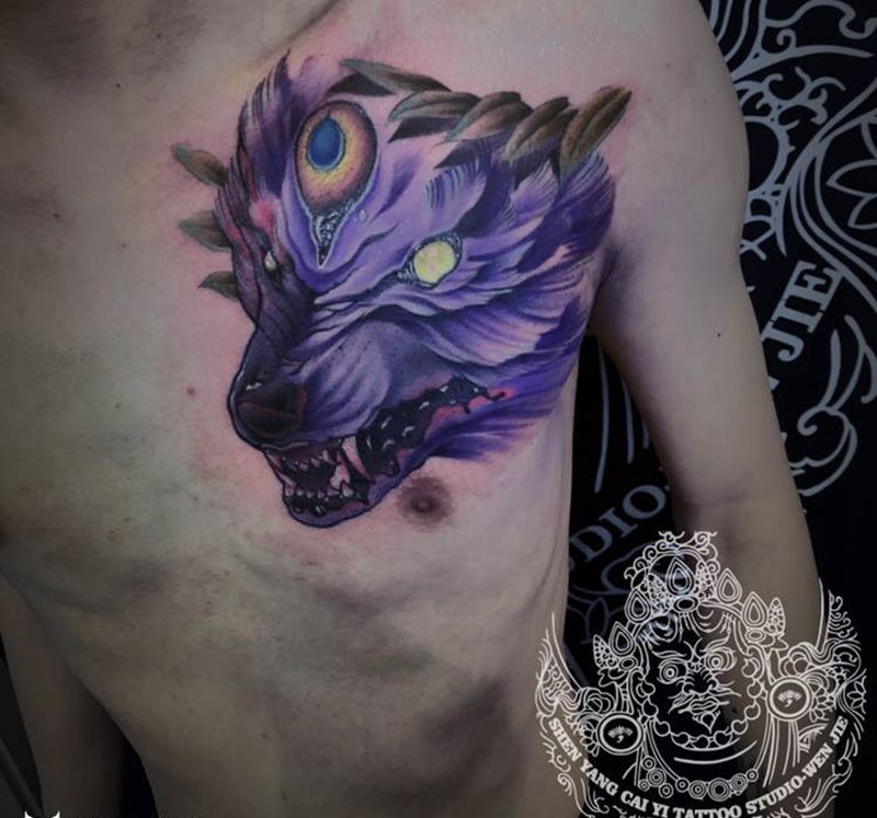 当前位置: 首页 >辽宁省沈阳市纹身店-沈阳彩艺刺青纹身图案>店内作品 狼头纹身图片_胸部欧美写实New School纹身图案