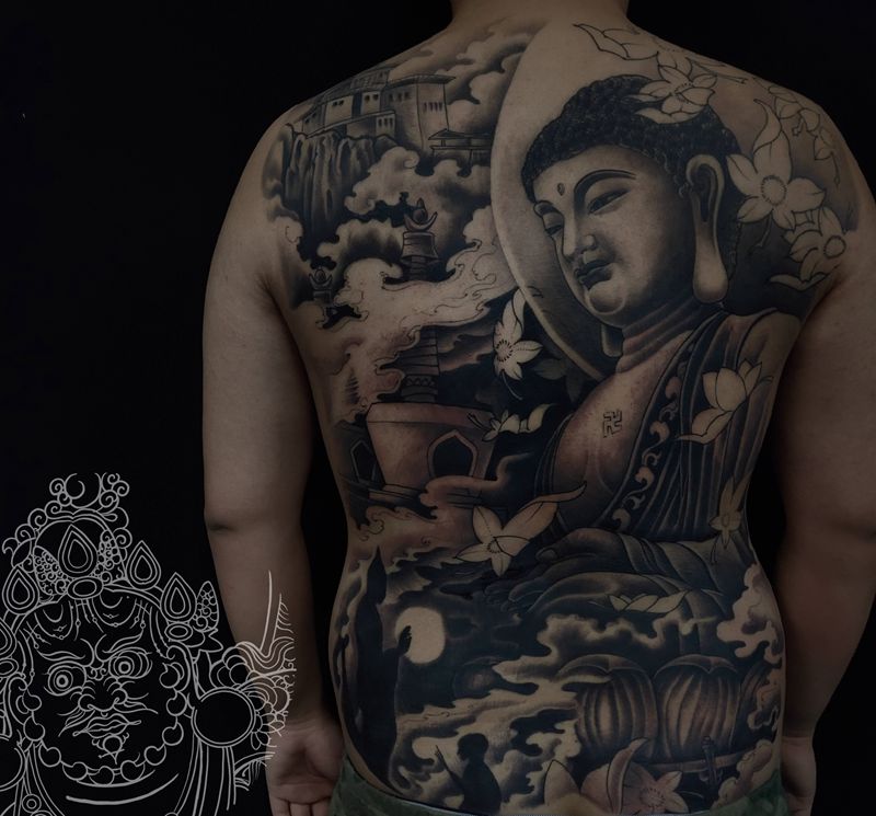 当前位置: 首页 >辽宁省沈阳市纹身店-沈阳彩艺刺青纹身图案>店内特价满背纹身图片_背部新传统纹身图案