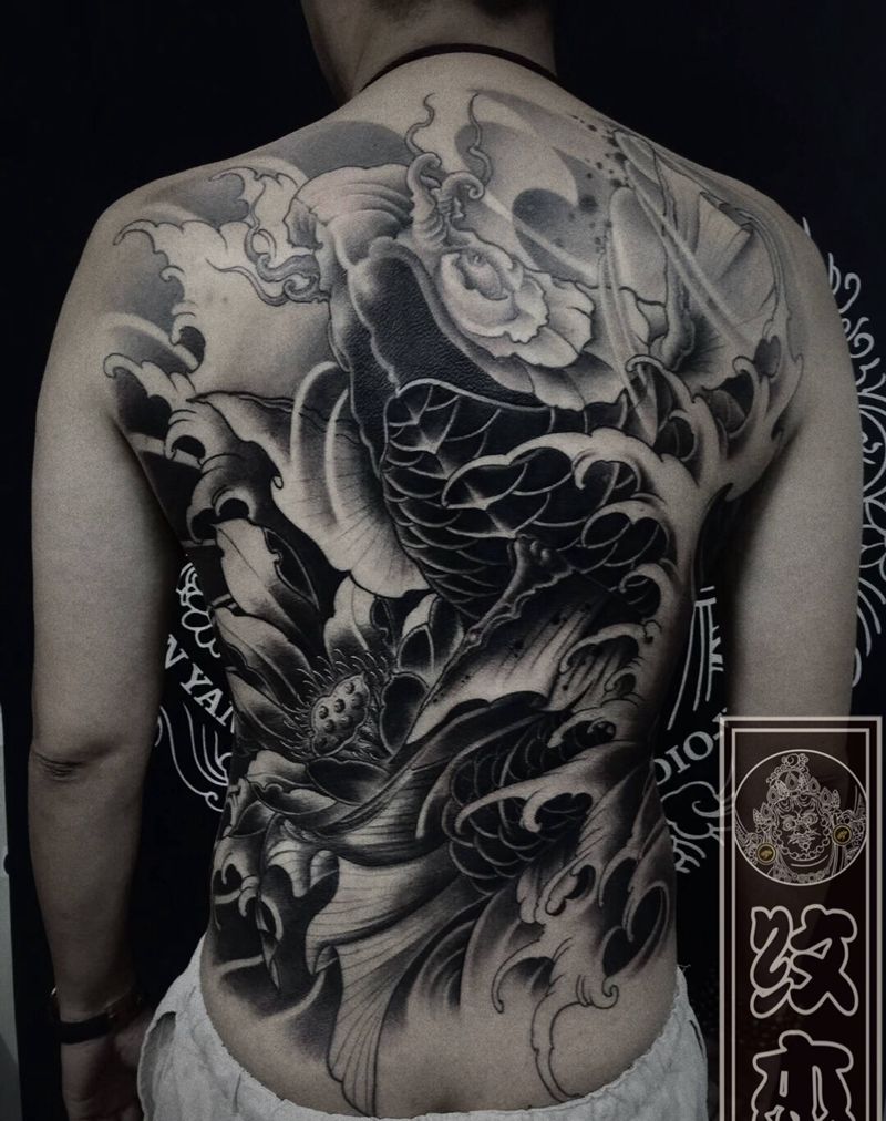 店内满背 鲤鱼纹身图片_背部新传统纹身图案