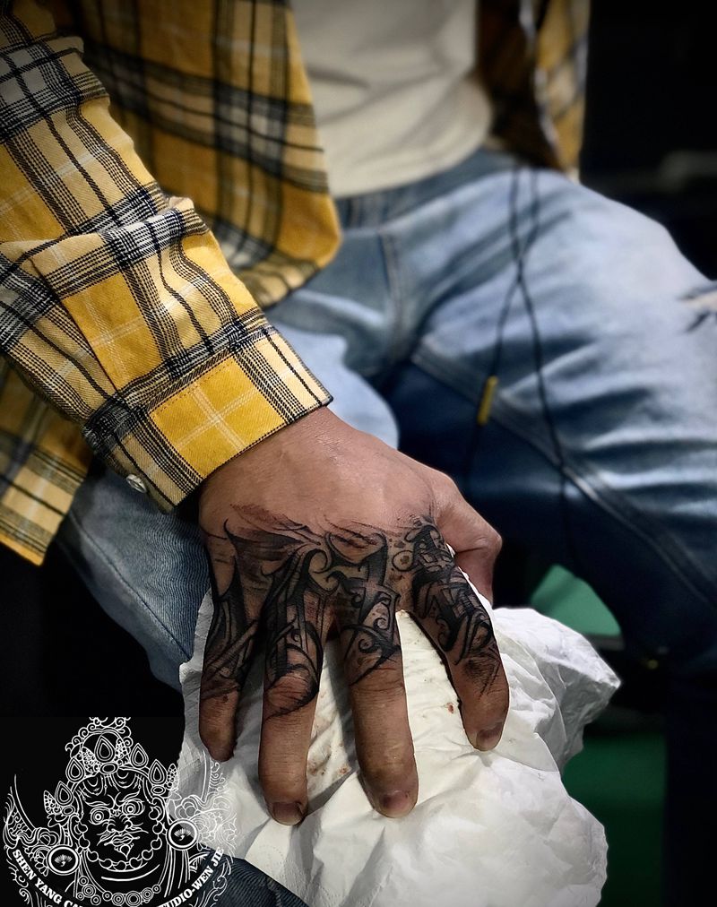 当前位置: 首页 >辽宁省沈阳市纹身店-沈阳彩艺刺青纹身图案>店内花体字纹身图片_手部花体字纹身图案