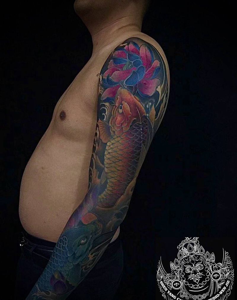 当前位置: 首页 >辽宁省沈阳市纹身店-沈阳彩艺刺青纹身图案>店内修改上色纹身图片_手臂新传统纹身图案