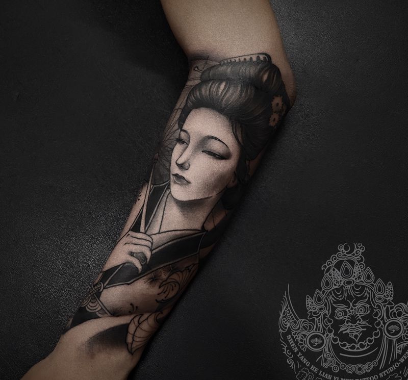 当前位置: 首页 >辽宁省沈阳市纹身店-沈阳彩艺刺青纹身图案>小臂艺妓纹身图片_手臂新传统纹身图案