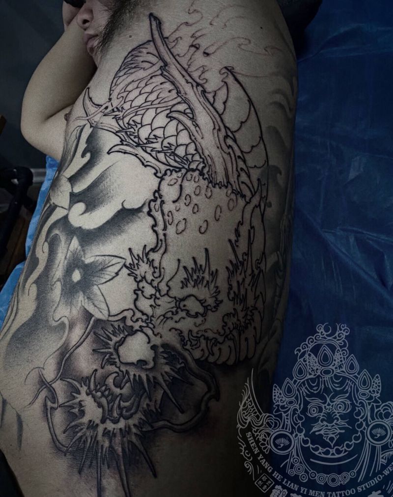 添加图案未完纹身图片_背部新传统纹身图案