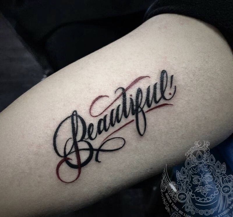 当前位置: 首页 >辽宁省沈阳市纹身店-沈阳彩艺刺青纹身图案>小花体英文纹身图片_手臂花体字纹身图案