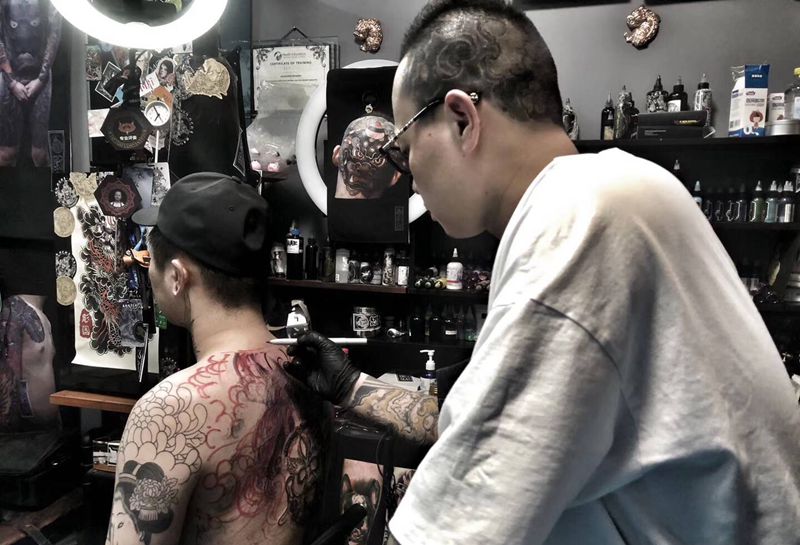 当前位置: 首页 >辽宁省沈阳市纹身店-沈阳彩艺刺青纹身图案>工作照纹身图片_背部老传统纹身图案