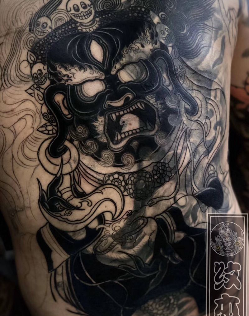 当前位置: 首页 >辽宁省沈阳市纹身店-沈阳彩艺刺青纹身图案>暴力遮盖纹身图片_背部老传统纹身图案