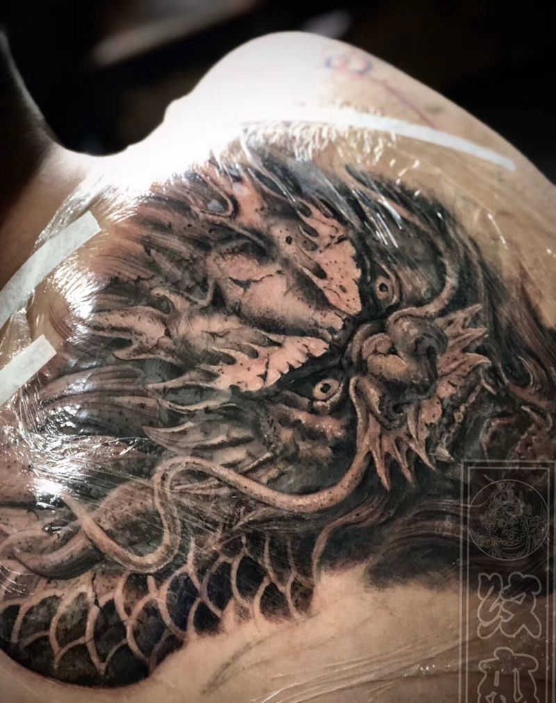 当前位置: 首页 >辽宁省沈阳市纹身店-沈阳彩艺刺青纹身图案>九龙壁纹身图片_背部欧美写实纹身图案