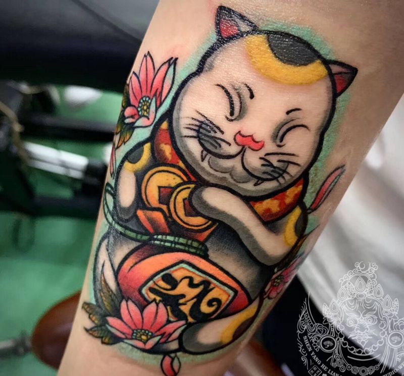 当前位置: 首页 >辽宁省沈阳市纹身店-沈阳彩艺刺青纹身图案>招财猫纹身图片_手臂Old School纹身图案
