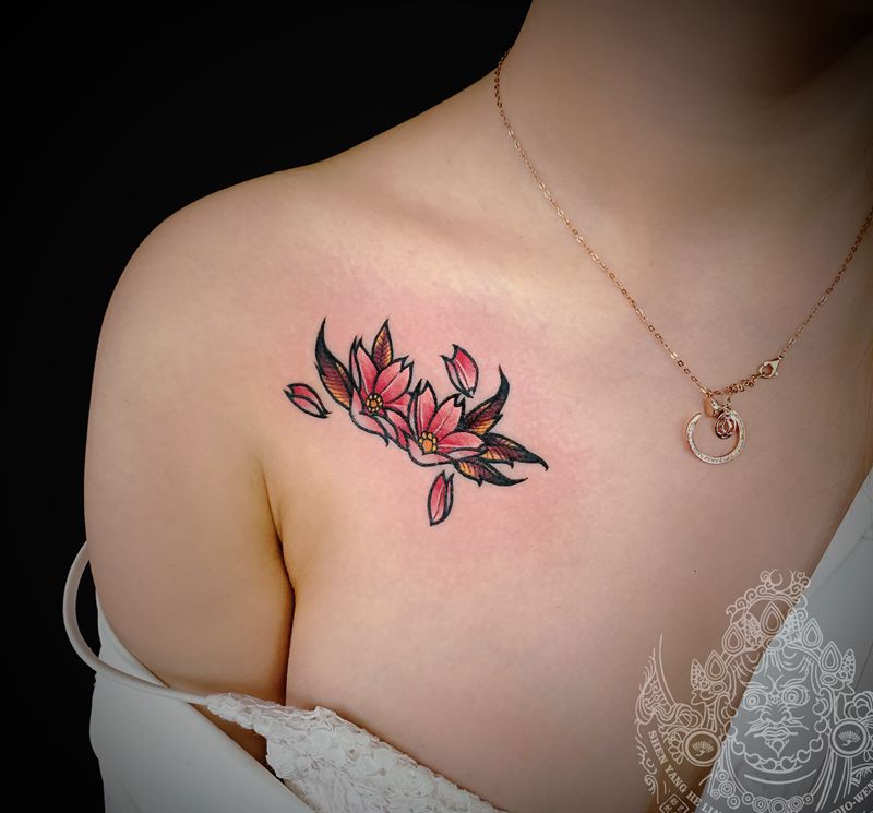 当前位置: 首页 >辽宁省沈阳市纹身店-沈阳彩艺刺青纹身图案>樱花纹身图片_胸部水彩New School纹身图案