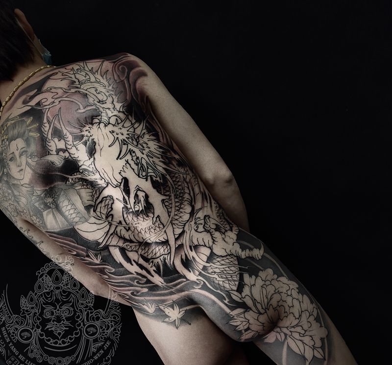 当前位置: 首页 >辽宁省沈阳市纹身店-沈阳彩艺刺青纹身图案>满背进度。店内作品纹身图片_背部新传统纹身图案