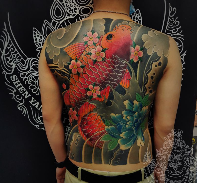 黑灰满背纹身图案
