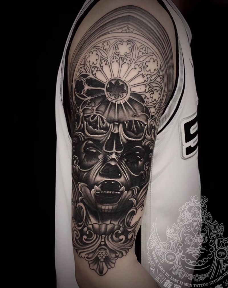 • 纹身吧推荐的披肩图腾半胛纹身图案作品展示